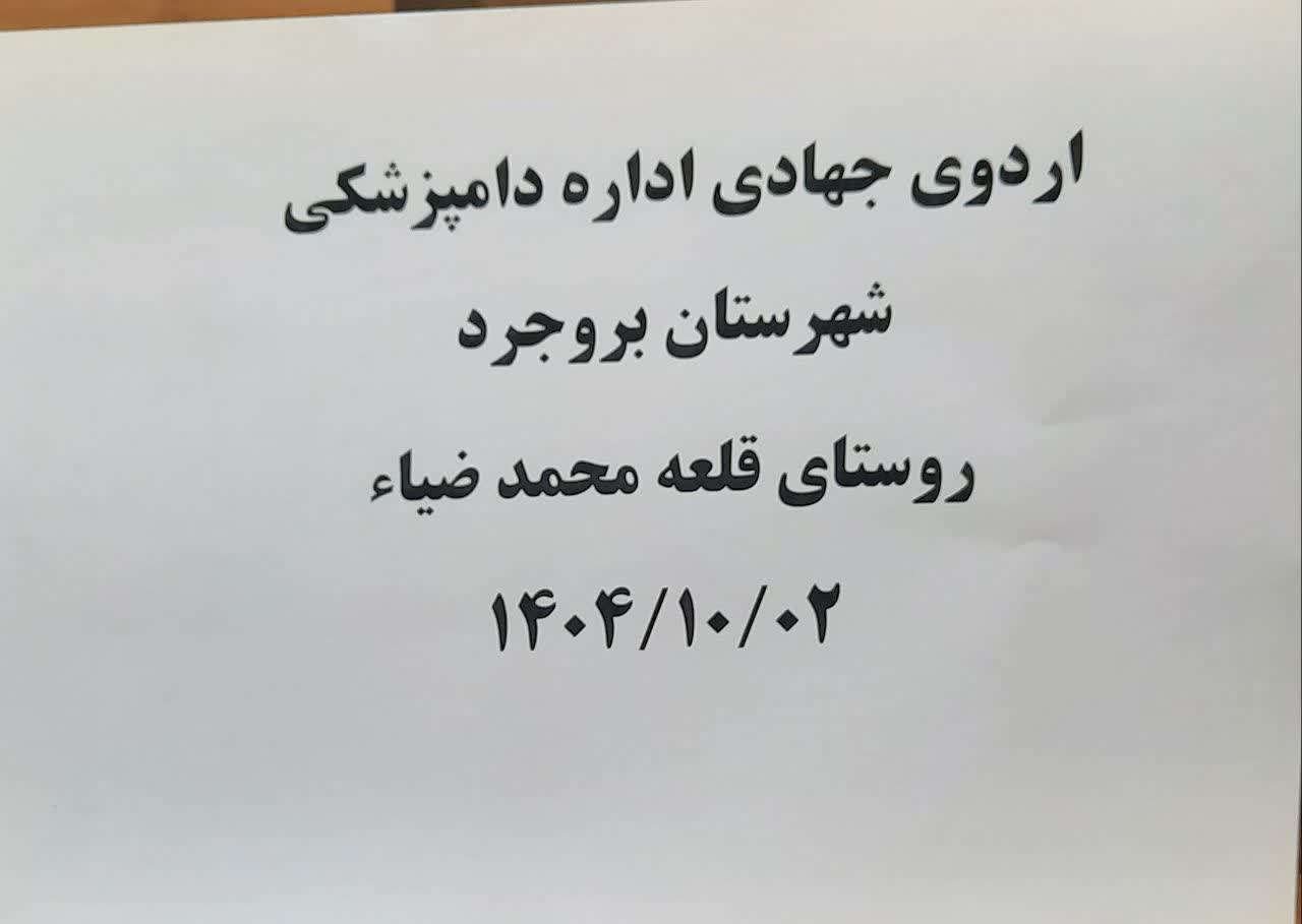 دکتر امین مهدی زاده رئیس اداره دامپزشکی شهرستان بروجرد در خصوص این خبر افزود: در مورخه ۲ دی ماه یک اردوی جهادی در روستای قلعه محمد ضیاء این شهرستان برگزار گردید و خدمات ویژه دامپزشکی توسط کارشناسان این اداره خدمت روستاییان ارائه گردید.