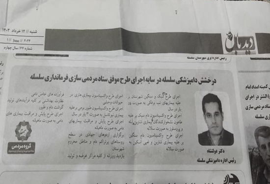 درخشش دامپزشکی سلسله در اجرای طرح ستاد مردمی سازی فرمانداری