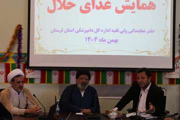 همایش یک روزه غذای حلال با حضور مدیرکل دامپزشکی، مسئول حوزه نمایندگی ولی فقیه در سازمان جهاد کشاورزی و مسئول نمایندگی ولی فقیه در دامپزشکی لرستان برگزار و در آن به بیان نکاتی در خصوص غذای حلال و نقش دامپزشکی در تامین غذای سالم پرداخته شد.