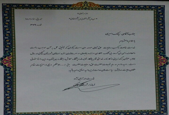 تقدیرفرماندارچگنی از رئیس وکارکنان دامپزشکی این شهرستان