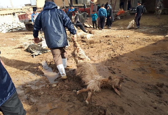 دفن بهداشتی لاشه های دامی تلف شده براثرسیل درشهرستان دلفان