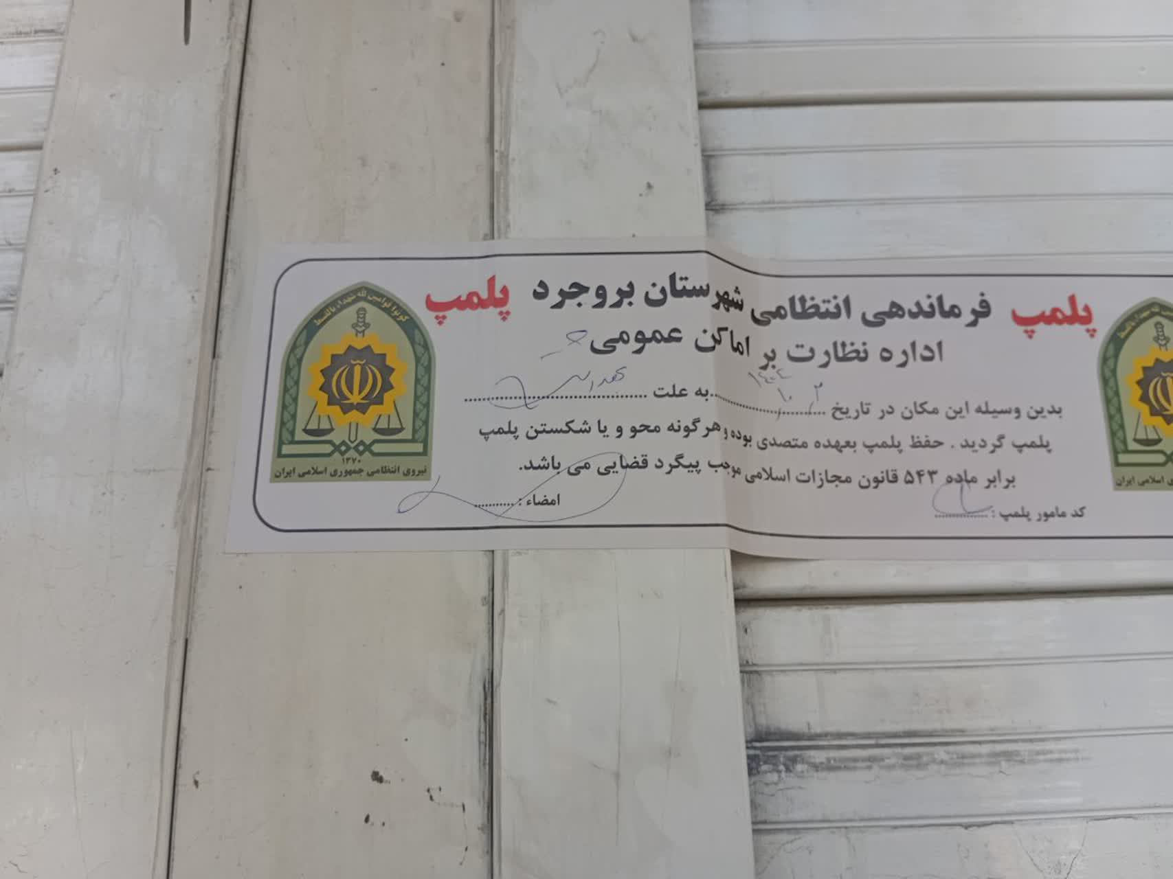 پلمپ ۲ واحد کبابی در شهرستان بروجرد به دلیل مشکلات بهداشتی