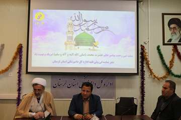 مراسم با حضور مدیرکل، دفتر نمایندگی ولی فقیه، معاونین و همه همکاران ستادی برگزار و در ابتدای این مراسم بعد از تلاوت قرآن و پخش سرود ملی حجت الاسلام میرقاسمی از دفتر نمایندگی ولی فقیه به بیان ایاتی چند در هدف از رسالت حضرت محمد ( ص ) پرداخته و این عید سعید را به همه همکاران تبریک و تهنیت گفت.